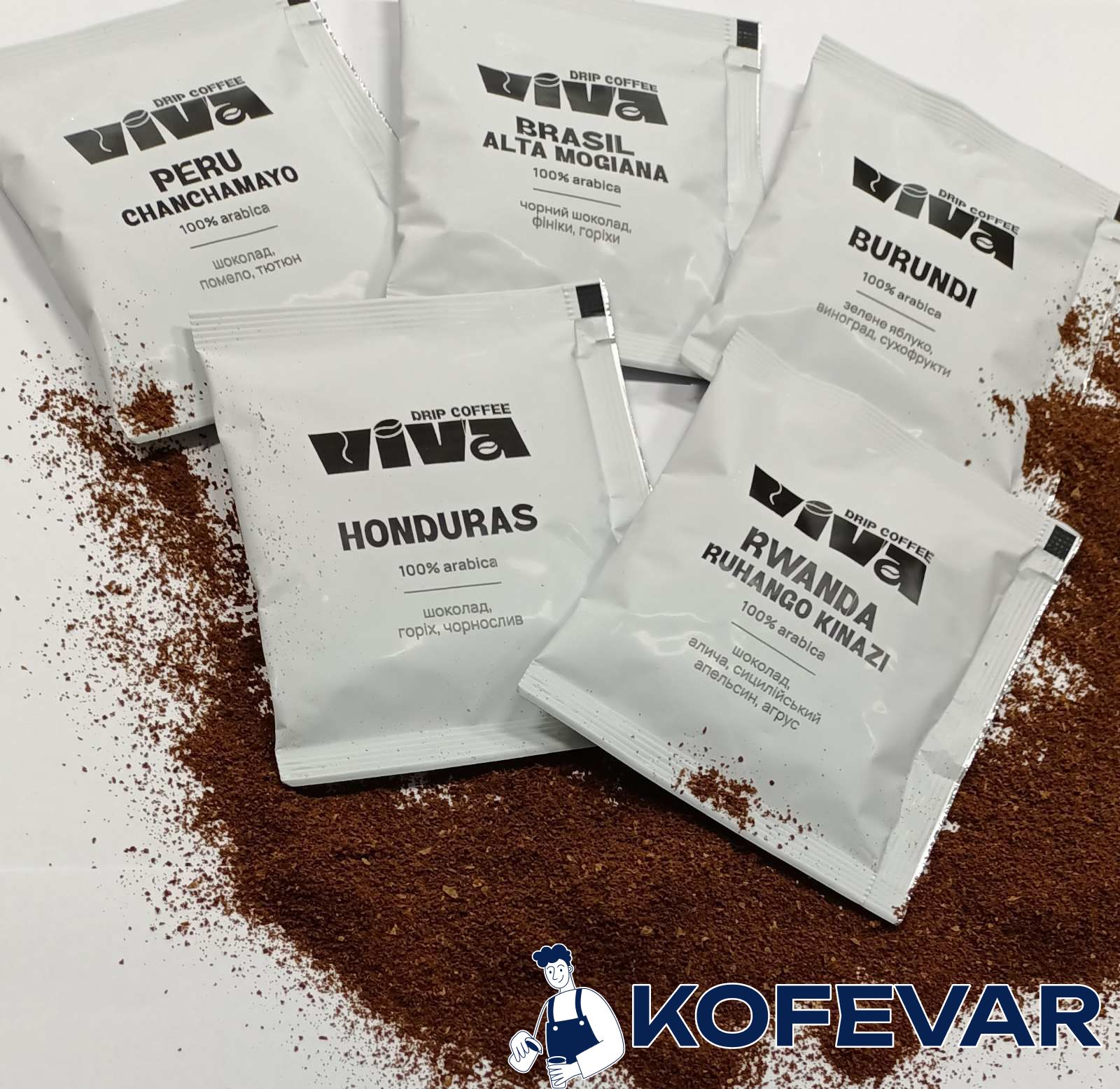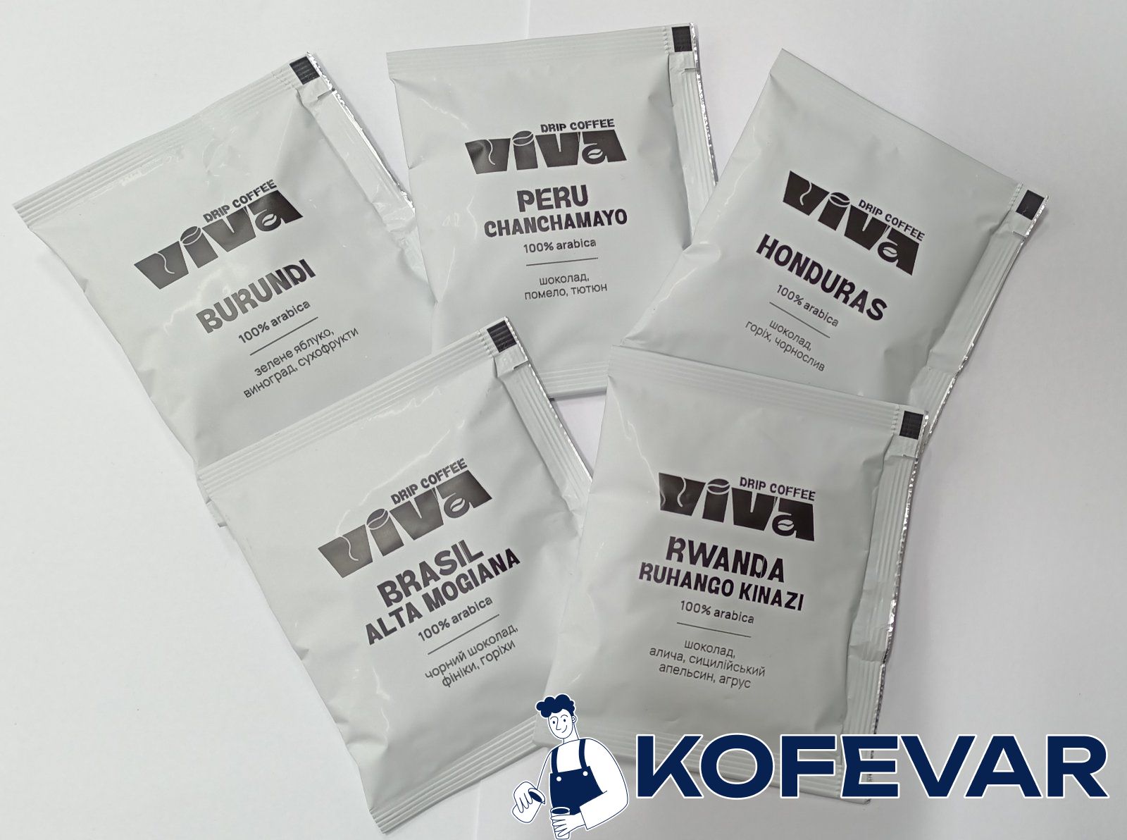 Дріп кава VIVA предмтавлена в п’яти смаках: